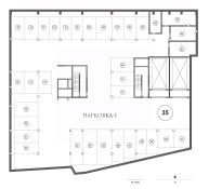 Из-за рельефа местности, цокольный этаж фактически является первым уровнем здания. На цокольном этаже располагаются центральные входы в здание. Доступ в подземный паркинг осуществляется на специальных лифтах (платформах). Один из трех пассажирских лифтов спускается в паркинг. Все лифты на чердак не ходят. Чердак не арендопригодный, на большей части чердака (за исключением 110 м²) располагается инженерное оборудование, на меньшей части (110 м²) расположилась дополнительная переговорка и комната для занятий спортом.