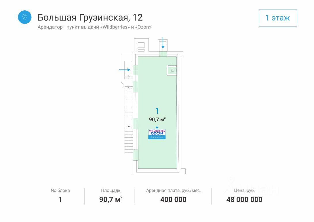 Арендатор - пункт выдачи "WILDBERRIES" и "OZON", МАП - 400 000 рублей.