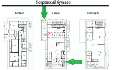 Особняк общей площадью 524 м2. 1-й этаж, мансарда, подвал, железобетонные перекрытия, планировка смешанная, отсутствуют несущие стены. Отдельный вход с бульвара и второй со двора. Парковка перед фасадом и своя во дворе (земeльный учaстoк (aрeндa) 336 м2). Электрическая мощность 140 кВт. В помещении выполнен косметический ремонт. Место для размещения рекламы на фасаде.
