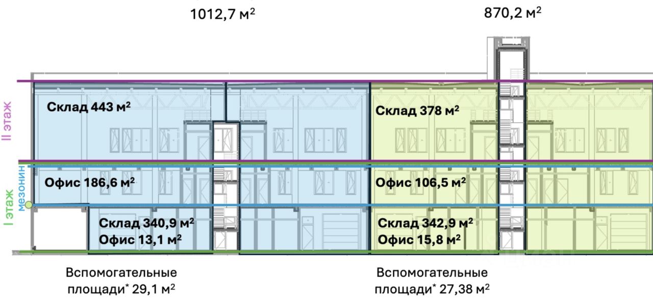 Продажа 2 отдельных блоков площадью 850-1000 кв.метров. Два этажа и мезонин.