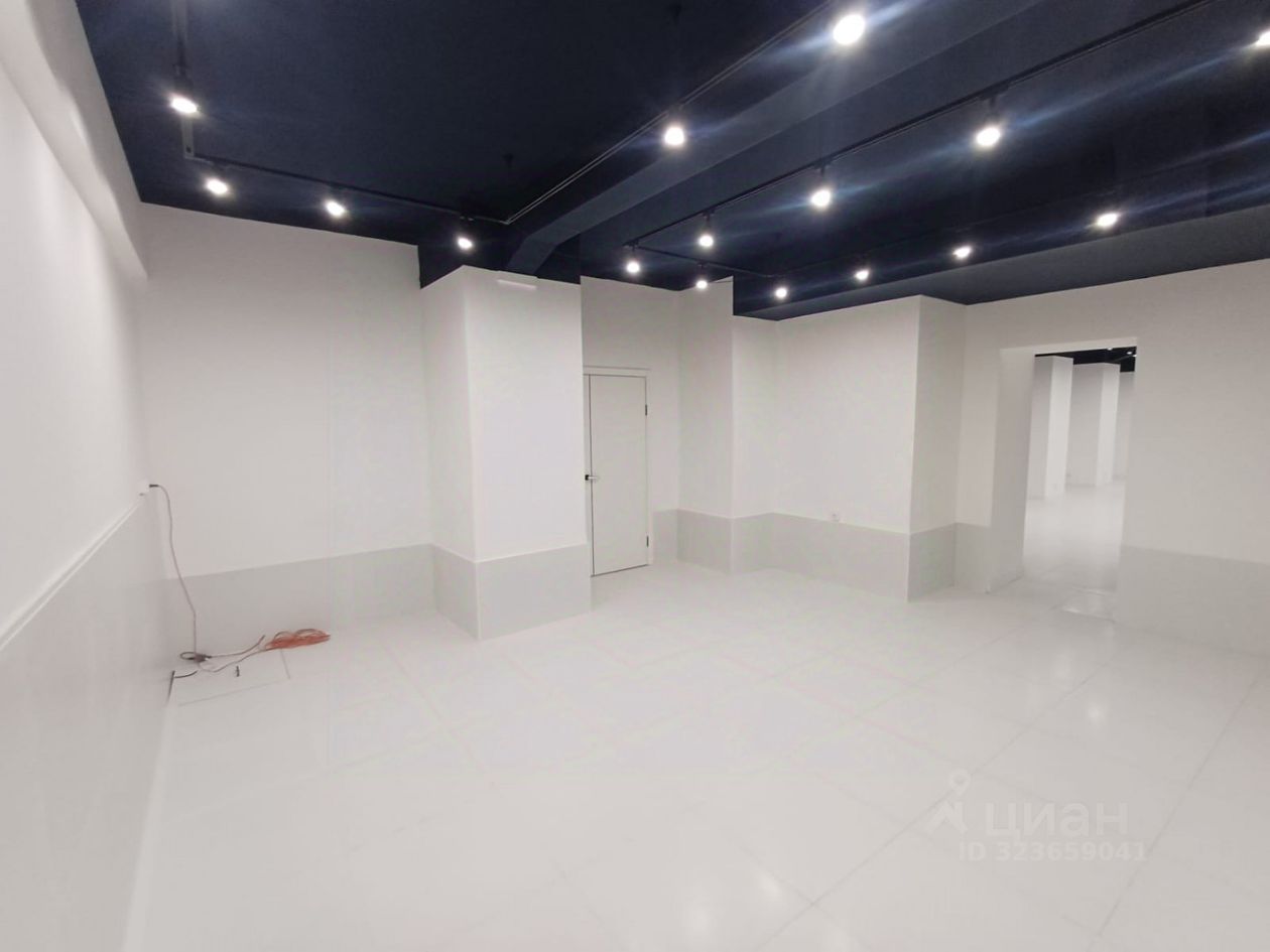 Помещение расположено на цокольном этаже 7 этажного жилого дома. Имеется два входа, 12 окон, 2 санузла, подсобное помещение и три зала расположенных на две стороны жилого дома.