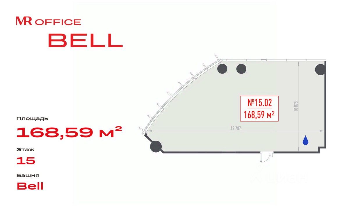 Продается офисное помещение 168.59 м² на 15 этаже в новом небоскребе класса Prime — БЦ BELL на Белорусской от бренда MR Office.