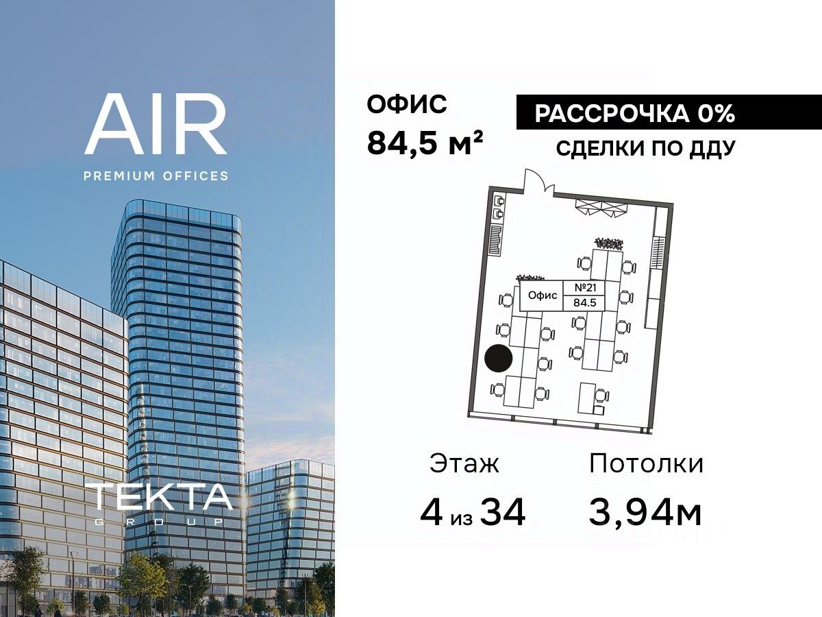 Продается помещение свободного назначения 84.50 м² на 4 этаже бизнес-центра AIR.