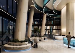 Пространства лобби обладают двусветной структурой, площадью до 500 кв. м, высотой потолков 8 м и витражным остеклением, что обеспечивает высокую степень естественного освещения.
