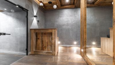 Планировка включает в себя ресепшн, массажную комнату, купель, сауну, парную, бассейн, душевые с бочками, санузлы, комнату отдыха, большую гостиную с выходом на кухню, отдельный выход для клиентов.
