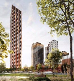 -ЖК состоит из 6 корпусов переменной этажности (от 24 до 43 этажей), рассчитанных на 1 833 квартиры;