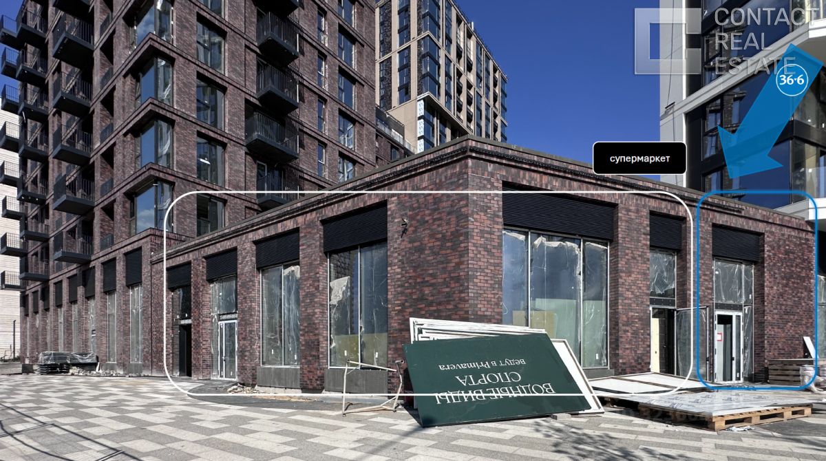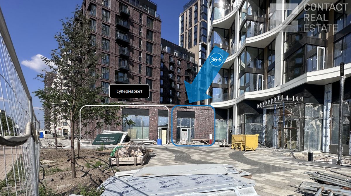 Помещение площадью 56,1 кв.м, находится в ЖК "Клубный город на реке Примавера", в 10 минутах ходьбы от станции метро "Спартак", интенсивный пешеходныйи автомобильный трафик вдоль помещения.
