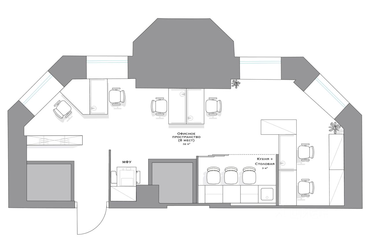 • Современные сервисы для резидентов: приватные переговорные, зоны для телефонных звонков, комната для хранения доставок, fitting room