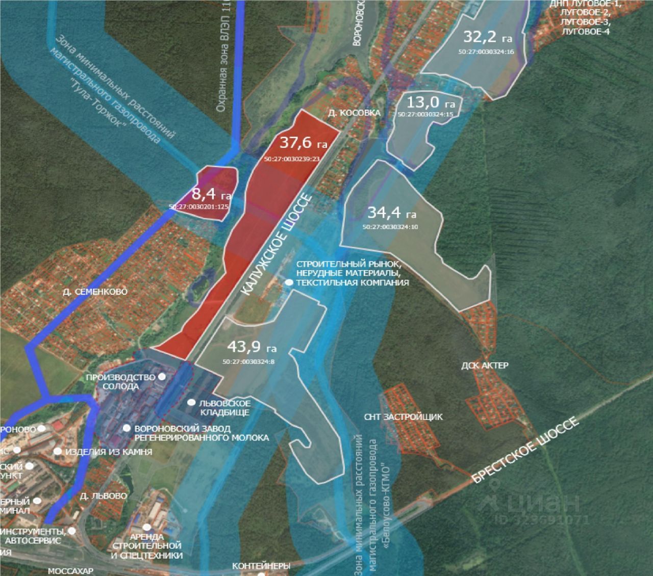 Сбер А предлагает к реализации 2 земельных участка площадью 83 500 кв. м. и 375 600 кв. м., расположенных по адресу: г. Москва, поселение Вороновское, вблизи д. Семенково
