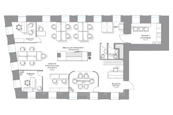 • Современные сервисы для резидентов: приватные переговорные, зоны для телефонных звонков, комната для хранения доставок, fitting room