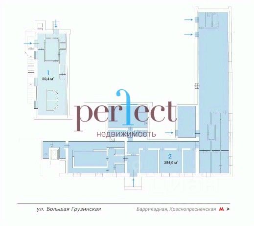 Предлагается в продажу помещения на улице Большая Грузинская, ЦАО, г. Москва. Аренда и продажа помещений у метро. Шаговая доступность от ст. метро "Баррикадная" и "Краснопресненская" — 5 минут пешком. Отличная пешеходная и транспортная доступность. Высокий рекламный потенциал и возможность размещения вывесок на фасаде. Городская парковка вдоль фасада здания.