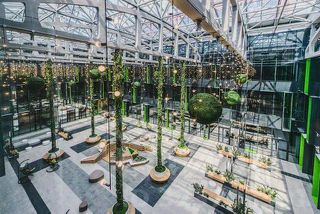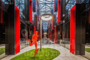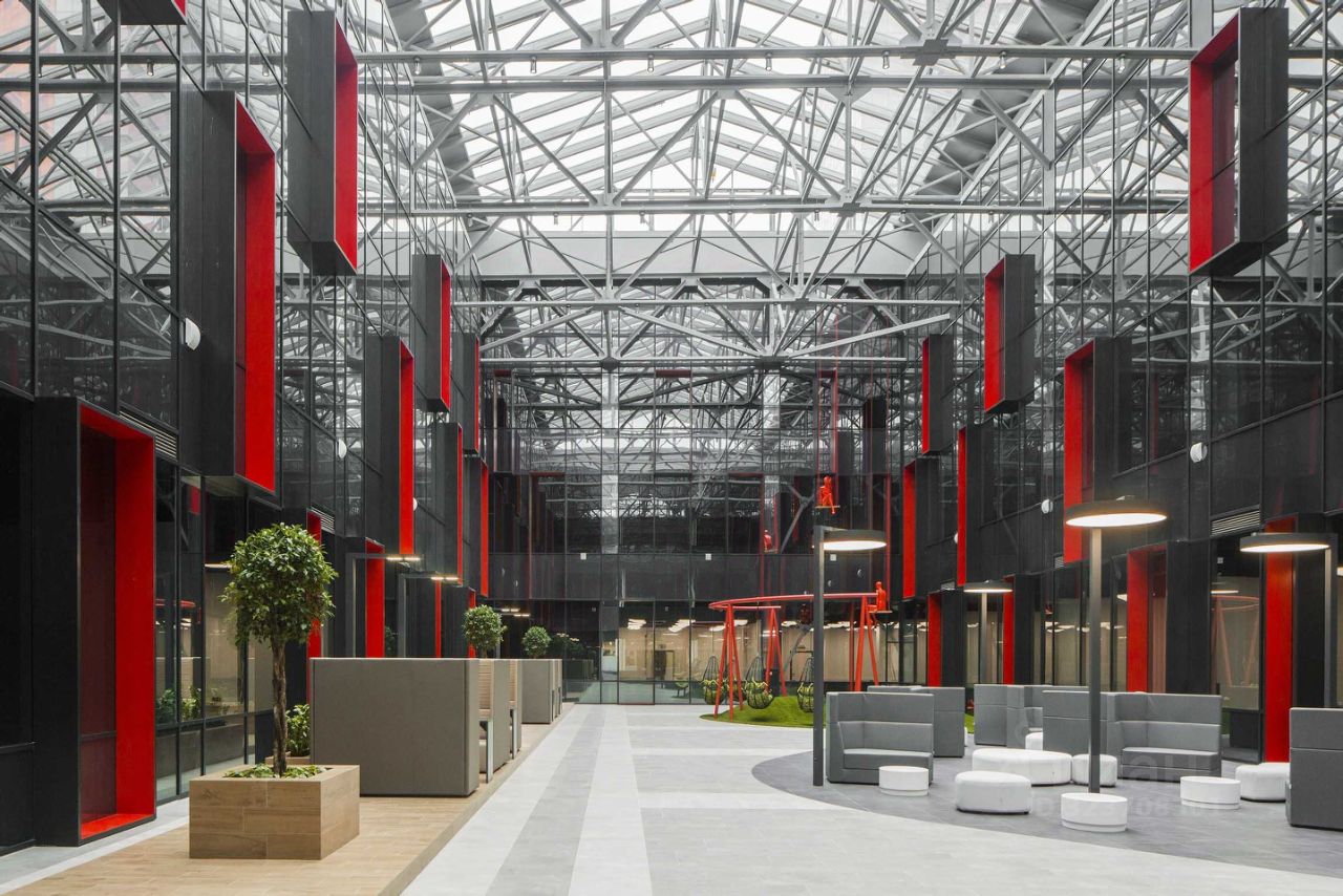 В бизнес-центре запроектированы 8 дизайнерских атриумов с высотой потолков 8 метров, с удобными диванами, креслами и столами для нетворкинга. В одном из атриумов расположен профессиональный теннисный корт. В бизнес-центре работает экспозиция собственного музея современного русского искусства Pop Up Museum