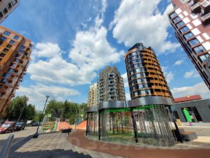 Отлично просматривается с трёх сторон: от въезда в жилой комплекс, с главного пешеходного бульвара и с транзитной дороги.