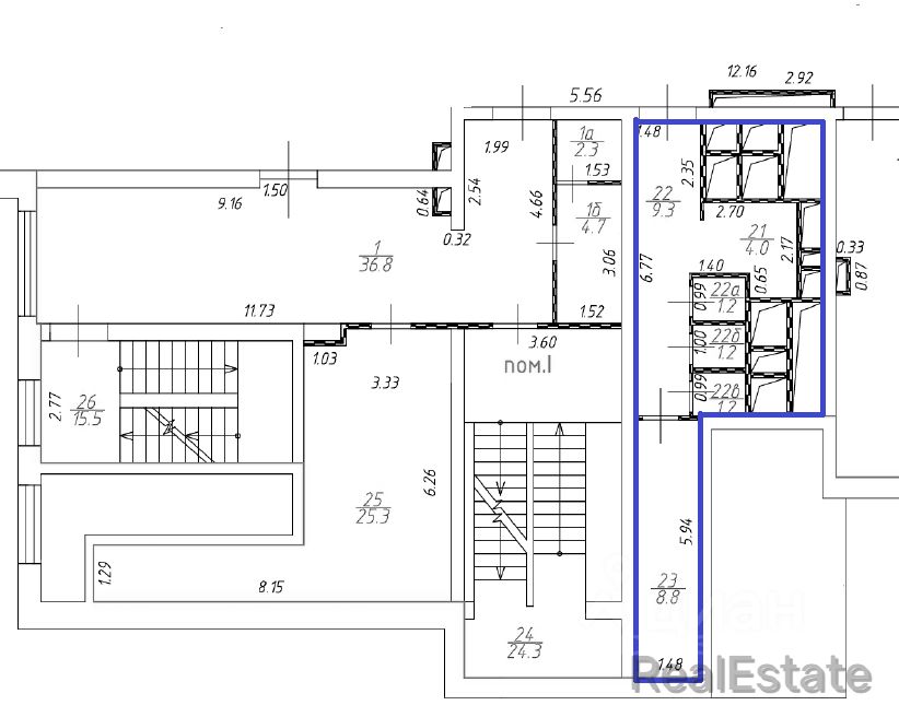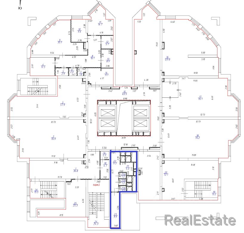 Помещение располагается на 2 этаже жилого дома (на плане БТИ выделено синим цветом).