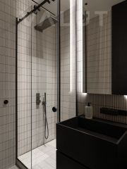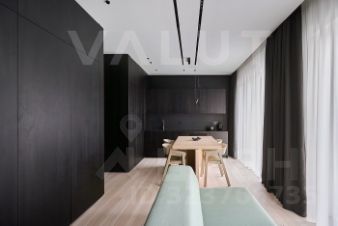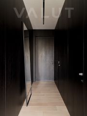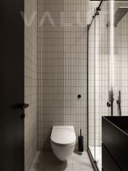 - Премиальная отделка — натуральные материалы из дуба, итальянская сантехника Fantini, эксклюзивная плитка Mutina, мебель от Muuto и Luceplan Across