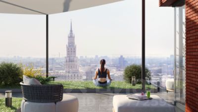 Комплекс выделяется футуристичной архитектурой от знаменитого бюро MVRDV: выразительный фасад, панорамные окна, гармоничный ландшафт. Владельцев ждут фитнес-клуб с бассейном, современный коворкинг, частный гастроном и авторское лобби.