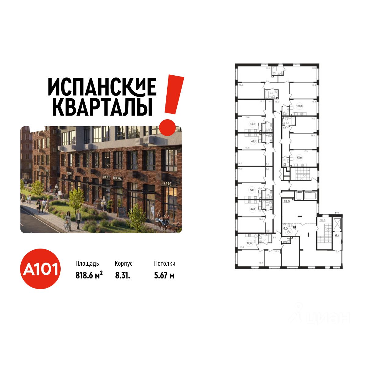 Продается торговое помещение площадью 818.60. на 2-м этаже ЖК "Испанские кварталы".