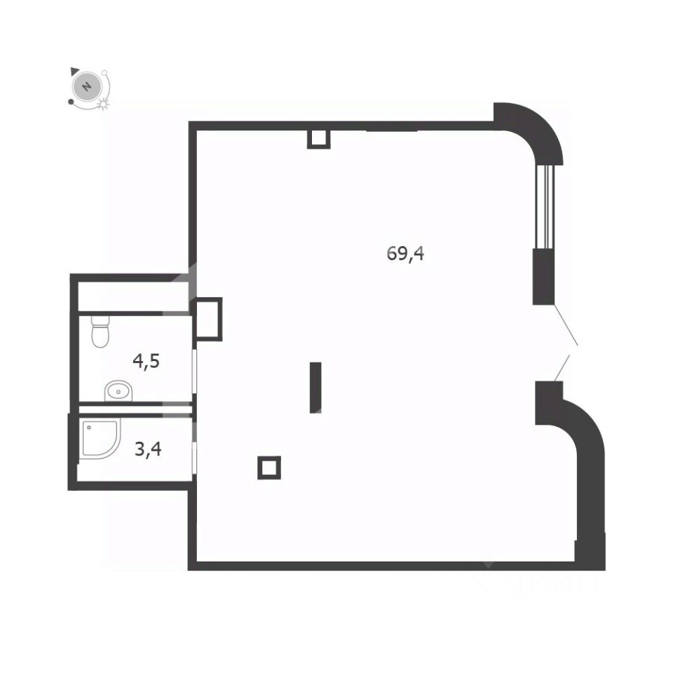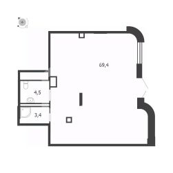 1070936 . Предлагаем помещение свободного назначения формата street-retail в ЖК "Shagal", площадью 77.3 кв. м, расположенное на первом этаже 19-этажного жилого дома. 3 очередь, 3 этап, корпус 7. Без комиссии для покупателя.