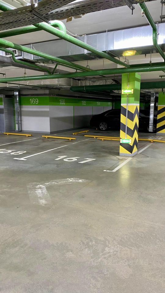 Освещенный, чистый подземный паркинг, ежедневная уборка, круглогодичная температура около 20 градусов, видеонаблюдение.