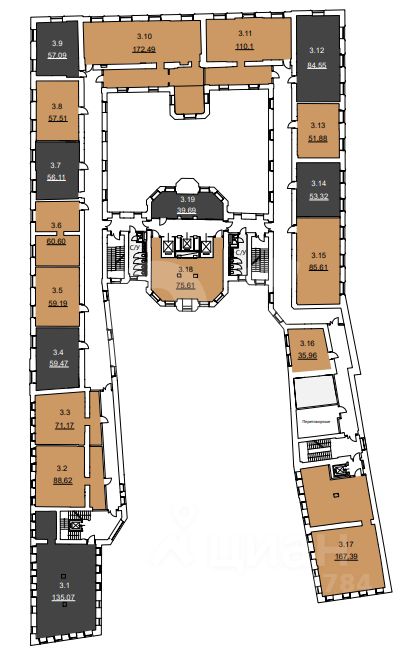 *Количество рабочих мест рассчитано автоматически: от 4,5 м2 на человека до 8 м2 на человека.