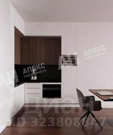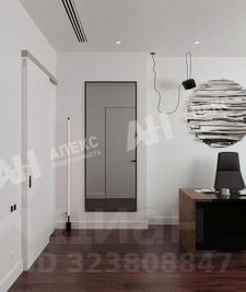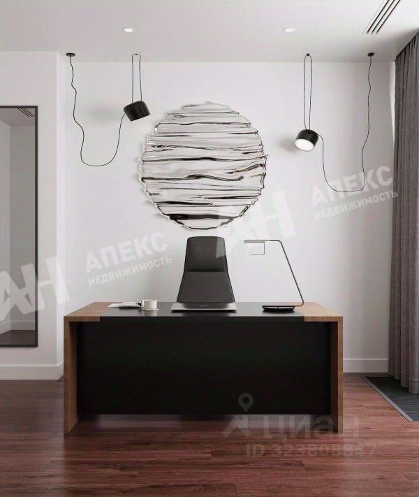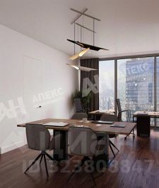 Помещение имеет отдельный вход и полностью укомплектовано необходимой инфраструктурой для работы. В состав входят мебель, мини-кухня, санузел с душевой кабиной и гардеробная. Планировка состоит из изолированного кабинета и зоны опенспейса. Отделка выполнена с применением премиальных материалов, а панорамные окна обеспечивают вид на город.