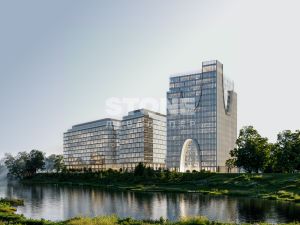 Благодаря расположению на берегу реки из офисов открываются паромные виды на парк и воду. Зелёные зоны создают благоприятный микроклимат, а также приятную атмосферу, повышая настроение сотрудников.