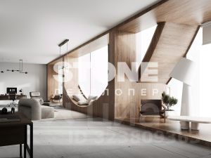 В реализации - офис, рассчитанный на команду от 5 до 40 человек, в составе премиального бизнес-центра STONE Мнёвники. Первый офисный проект в живописной Мнёвниковской пойме среди знаковых объектов спортивной инфраструктуры в окружении ЖК "Остров".