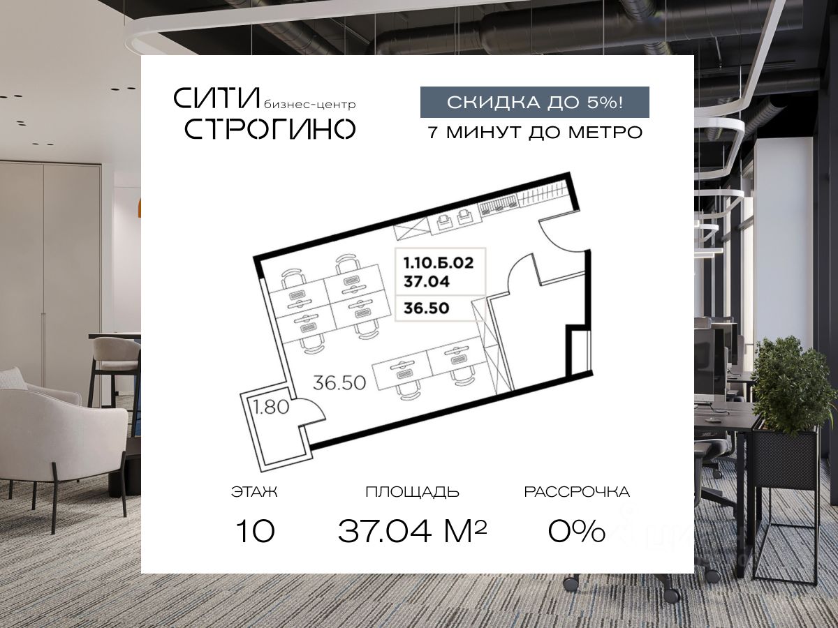 В продаже от застройщика комфортабельный Home-офис площадью 37.04 м² на 10 этаже в премиальном бизнес-центре Сити Строгино. Срок сдачи - 2028 год.