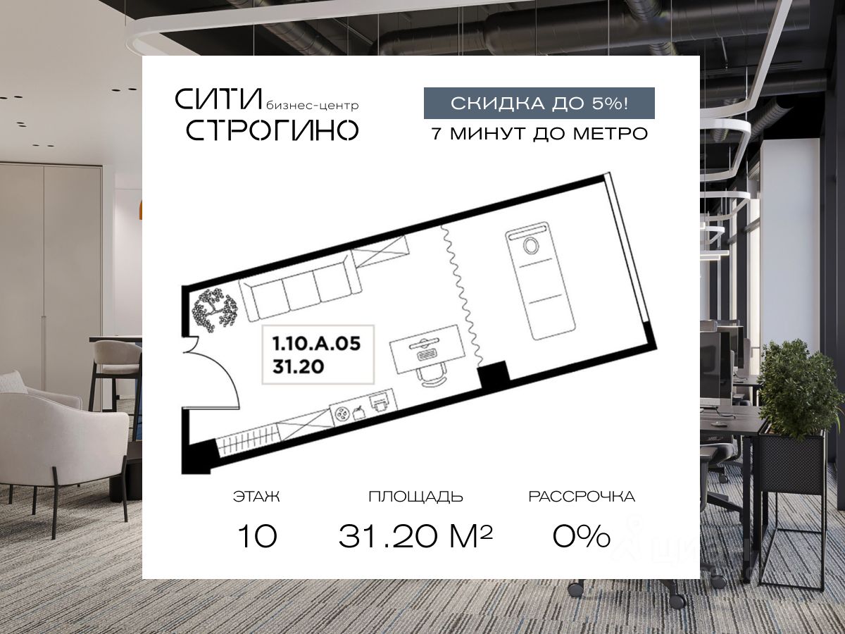 В продаже от застройщика комфортабельный Home-офис площадью 31.2 м² на 10 этаже в премиальном бизнес-центре Сити Строгино. Срок сдачи - 2028 год.