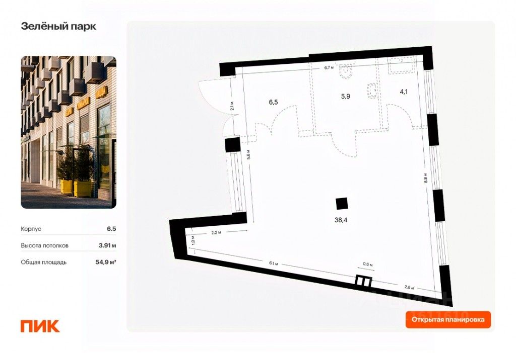Продаётся нежилое помещение свободного назначения в новом жилом районе Зелёный парк от ПИК. Открытая планировка, витринное остекление, удобный вход на уровне земли. Помещение номер 22. Продажа напрямую от застройщика.