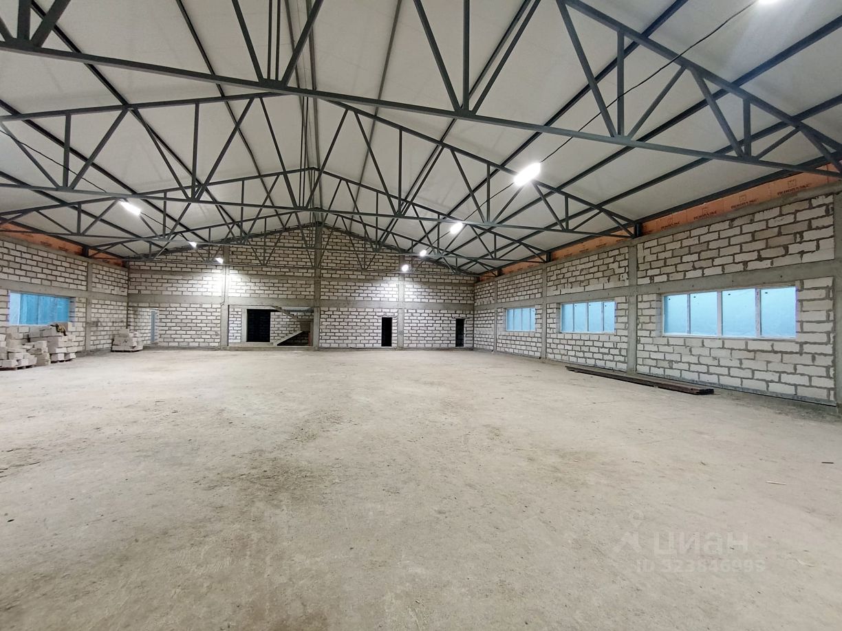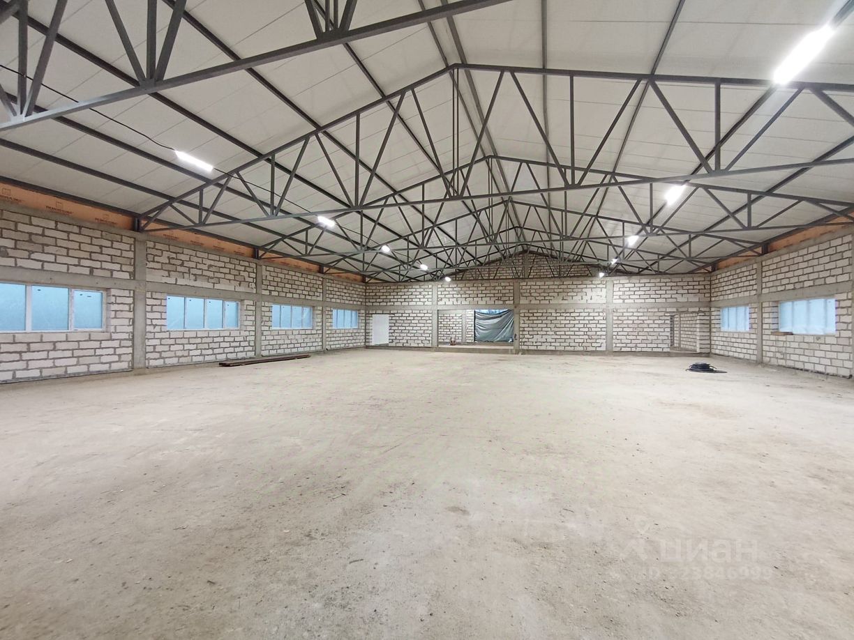 Размер цеха 60х24 м. Высота 5,5 м до ферм. Полы бетонные, подготовлены под финишное покрытие. Въездные ворота 4,2х4,5 м.