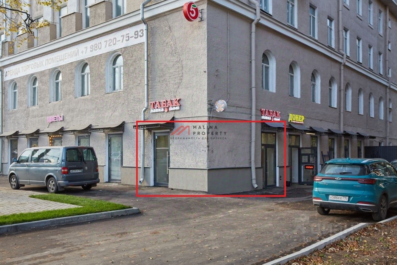Помещение 21,3 м2, располагается на 1 этаже (по документам цокольный этаж), открытая планировка, высота потолков 3,5 м. Электрическая мощность 5 кВт. место для размещения рекламы. Парковка перед фасадом.