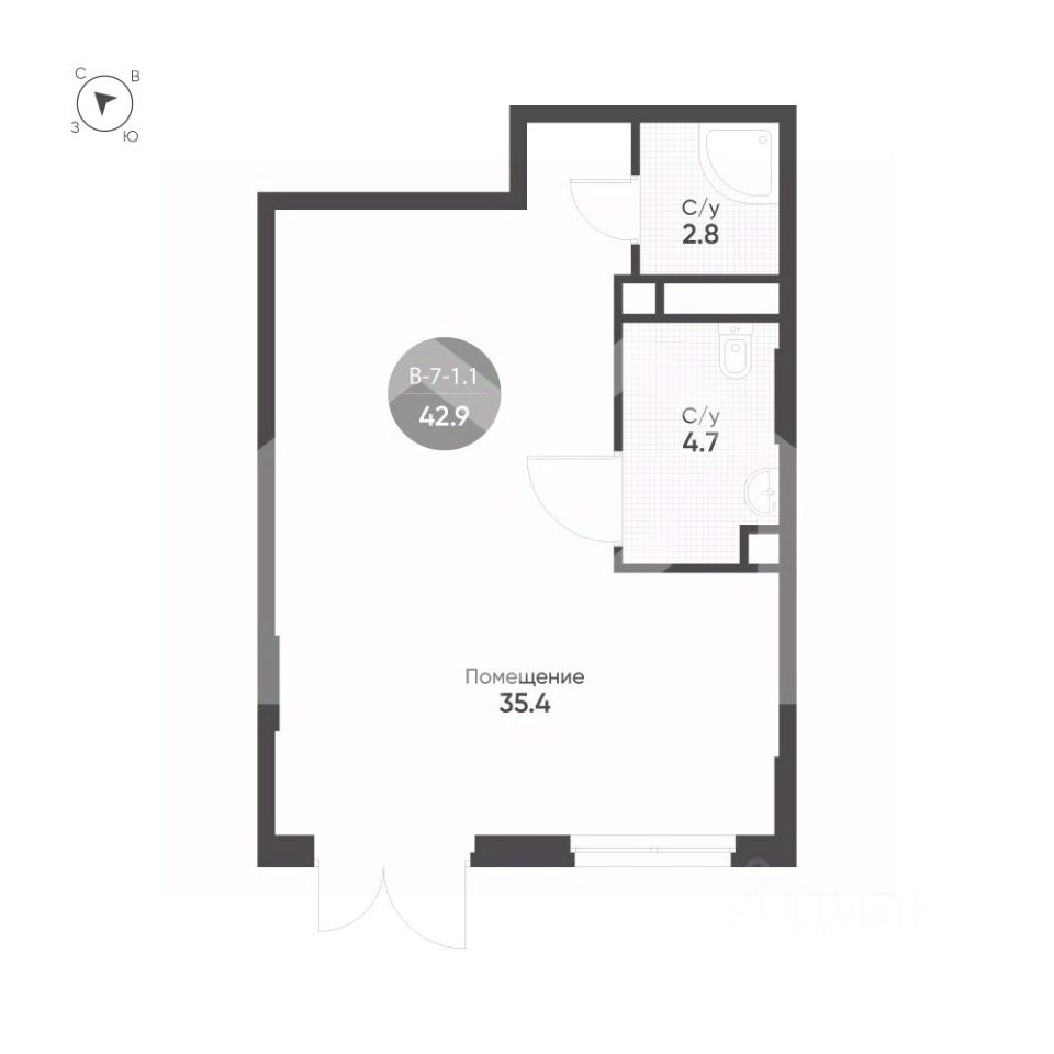 1082239 . Предлагаем помещение свободного назначения формата street-retail в ЖК "Shagal", площадью 42,9 кв. м, расположенное на первом этаже 9-этажного жилого дома. 3 очередь, 2 этап, корпус 1. Без комиссии для покупателя.