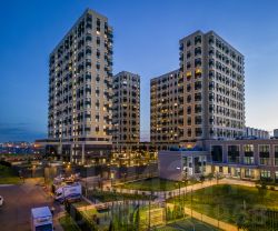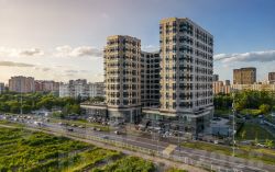 - Современная архитектура: три 22-этажных корпуса с благоустроенной территорией, стилобатной частью и единым архитектурным стилем. Комплекс введён в эксплуатацию в 2023 году — вы получаете современное пространство с качественной отделкой.