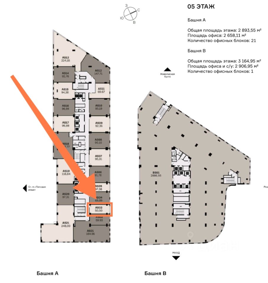 Продаю офисное помещение, общей площадью 50,5 м² в бизнес-центре Rublevo Business Park.