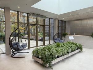 Офис 102,5 кв.м. с собственной террасой, 2 этаж, без отделки, мокрые точки, приточно-вытяжная система вентиляции с подогревом и охлаждением, центральное кондиционирование, охрана, ресепшн, подземный паркинг. Зоны отдыха, общие террасы, парк.