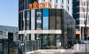 Здание находится на территории жилого комплекса Режиссер в центральной локации, напротив главного входа и рядом с центральным въездом. Объект отличается удобной транспортной доступностью.