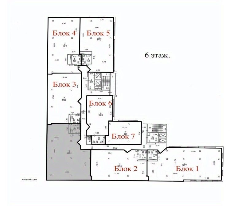 Описание помещения: Блоки площадью 193,1 м2, 187,4 м2, 116,7 м2 и 86,1 м2.