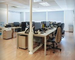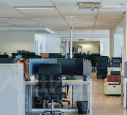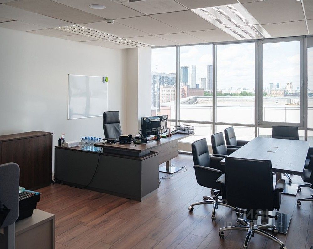 Описание помещения: Целиком этаж. Есть переговорные комнаты, серверная, 4 сан. узла и кофе-поинт. Панорамное остекление.