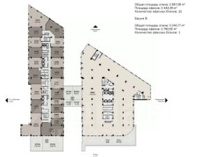 Блок с собственной террасой площадью 227.75 м2. Шаг колонн от 4.75 до 8.7 метра. Помещения имеют панорамное остекление с возможностью проветривания и высокий уровень шумоизоляции.
