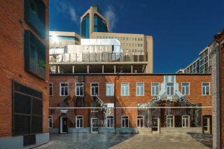 Отдельно стоящее здание на территории делового лофт-квартала Товарищество Рябовской Мануфактуры. Пространство занимает 55 тыс. кв. метров в одноименном районе Москвы на пересечении Большого Староданиловского и Холодильного переулков в центре города.