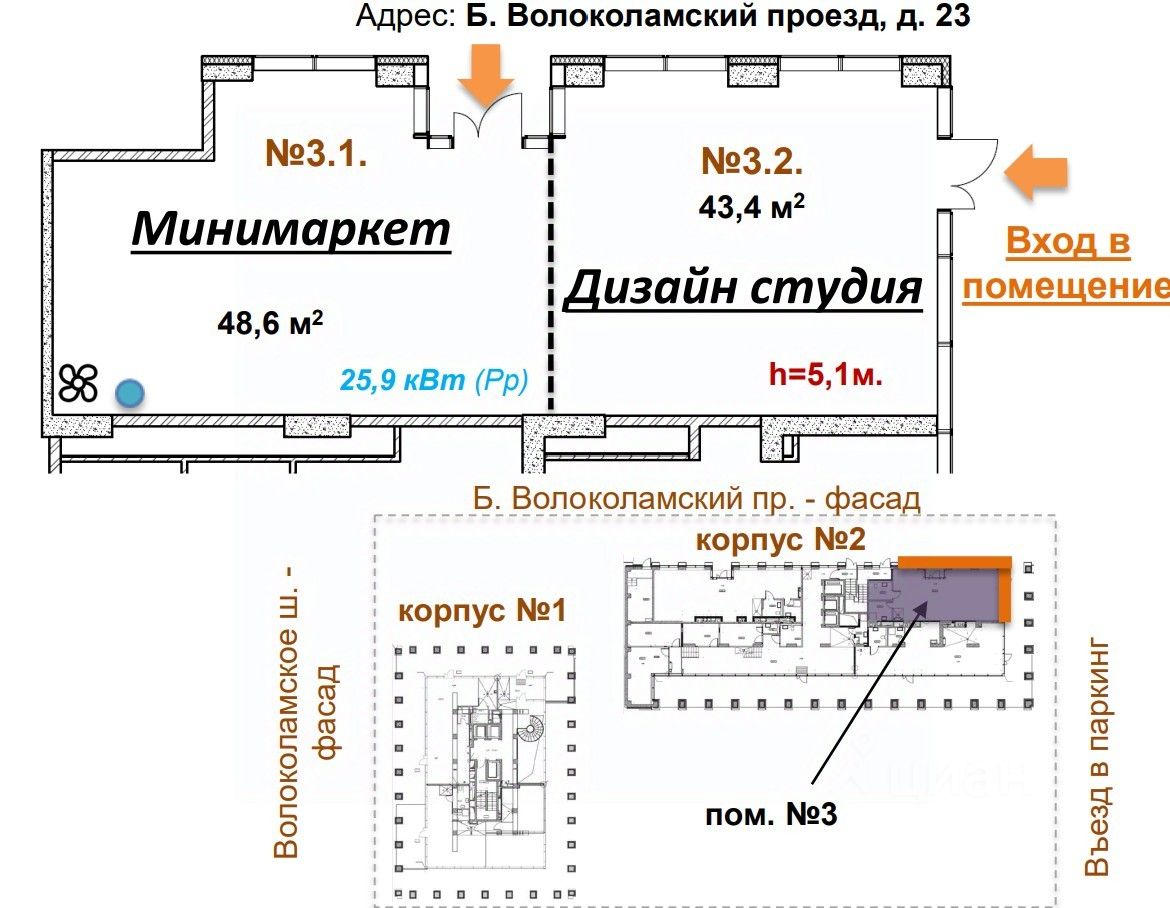 Готовый арендный бизнес (ГАБ). Доходность 10%, окупаемость до 10.17 лет. Baires Байрес - это комплекс апартаментов бизнес класса в престижном районе Москвы Щукино. Два камерных жилых корпуса высотой 18 и 22 этажа и закрытый благоустроенный двор с собственным выходом в парк Всехсвятская роща, расположенным сразу за территорией комплекса. Налоговая: 34. Лифты: Есть. Вентиляция: Приточно-вытяжная. Кондиционирование: Сплит-системы. Безопасность: Круглосуточный доступ, Система пожаротушений, Видеонаблюдение. Парковка: Подземная, Наземная. Описание помещения: Помещения расположены в корпусе 2. Два соседних блока - 48.6 м2, занимает минимаркет и 43.4 м2 - дизайн студия. Планировка: открытая. Типовой ремонт. Высокие потолки. Высота потолка: 5.6м. Тип налогообложения: НДС не облагается. Лот 61289-87