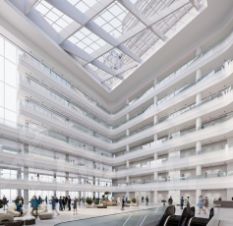 5 этаж - 1286 м2. Расчетная вместимость 107 рабочих мест. Есть выход на террасу и балконы