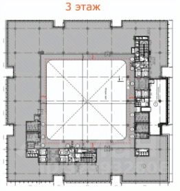 3 этаж - 1850 м2. Расчетная вместимость - 182 рабочих места.