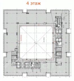 4 этаж - 1966 м2. Расчетная вместимость 197 рабочих мест.