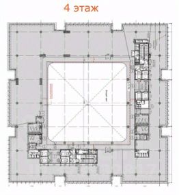 4 этаж - 1966 м2. Расчетная вместимость 197 рабочих мест.
