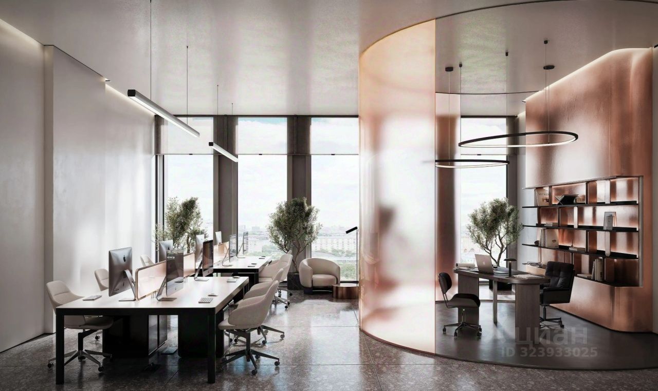 Каждый этаж вместимостью до 173 рабочих места. Дополнительные зоны - ресепшн, переговорные комнаты, кухня, зоны отдыха, гардеробная, принт-зона.