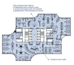 Офисные этажи с 18 по 23 этажи. Площадь типового этажа - 1640 м2.