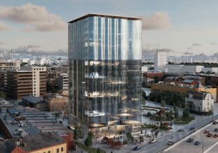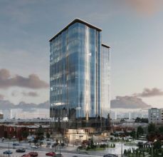 В офисе панорамное остекление.