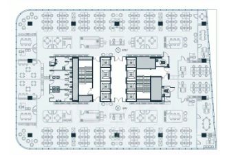 Гибкая свободная планировка с минимальным количеством несущих колонн предоставляет безграничные возможности для организации идеального рабочего пространства. Панорамные окна во всю высоту этажа создают эффект единения с городом.